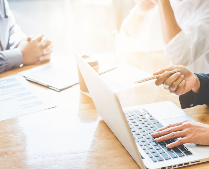 - Chúng tôi sẽ thực hiện các cuộc trao đổi để làm rõ: mục đích・mục tiêu của dự án / quản lý tiến độ / quản lý chi phí, để có thể tạo ra thành phẩm mà khách hàng mong muốn.